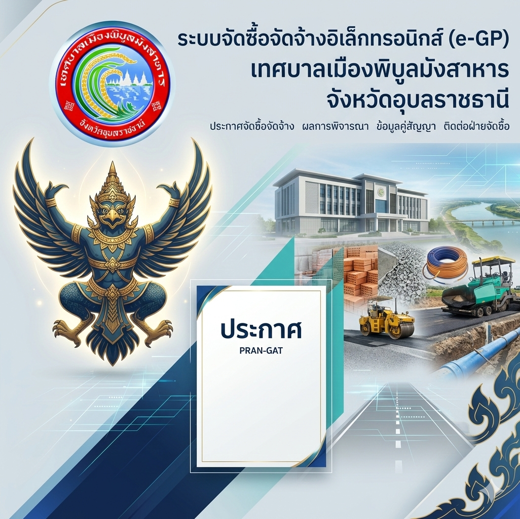 ประกาศเทศบาลเมืองพิบูลมังสาหาร เรื่อง ประกาศผู้ชนะการเสนอราคา ประกวดราคาจ้างก่อสร้างอาคารศูนย์พัฒนาเด็กเล็กเฉลิมพระเกียรติ 80 พรรษา...